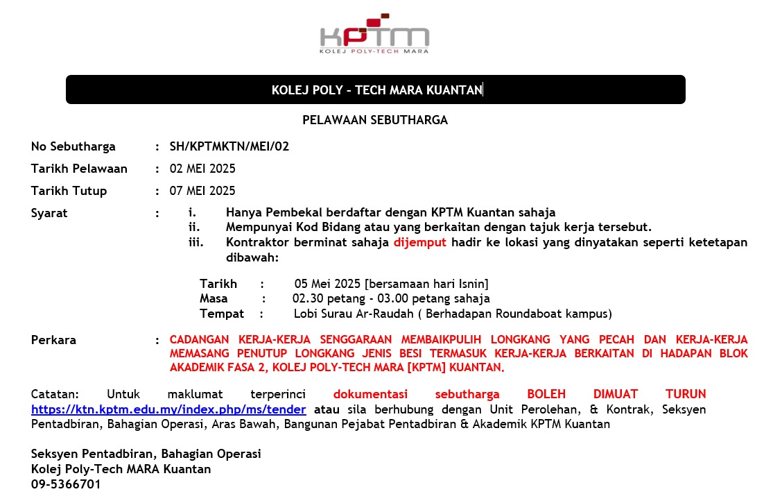 Group Telegram kontraktor berdaftar di KPTM Kuantan