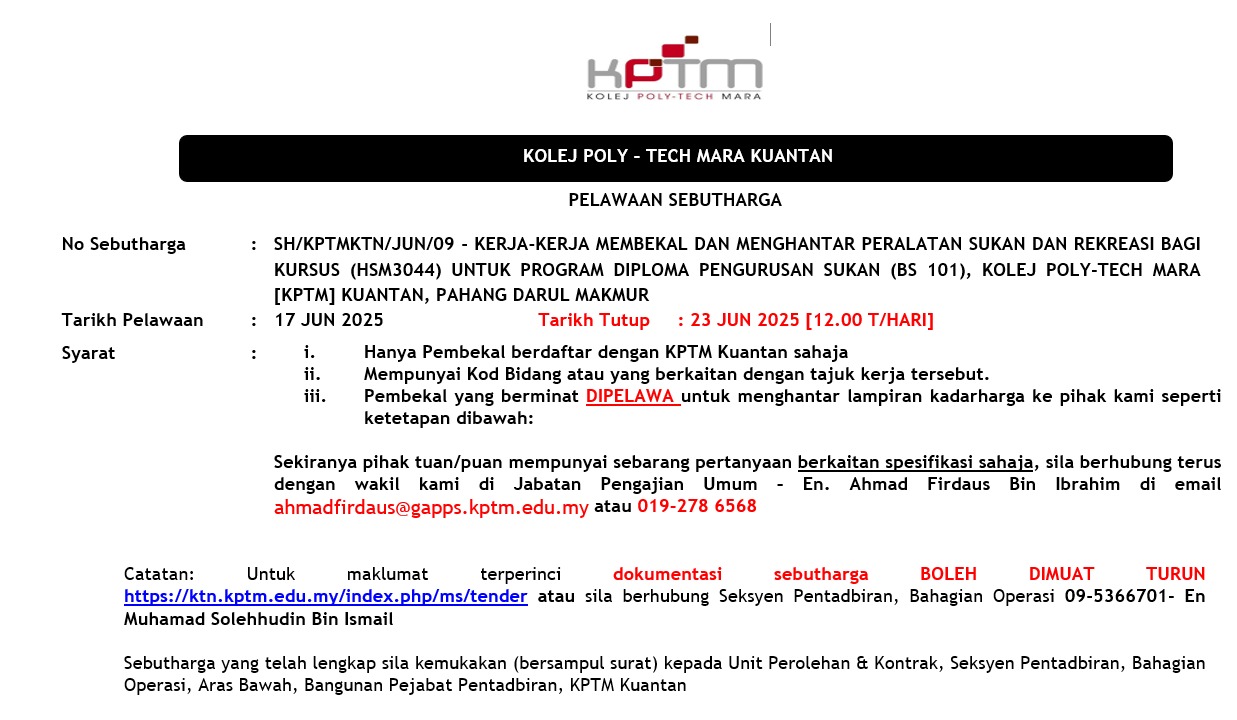 Kolej Poly-Tech MARA Kuantan, KM 8, Jalan Gambang, 25150 Kuantan, Pahang.
